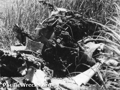 wreckage including the engine and propeller at