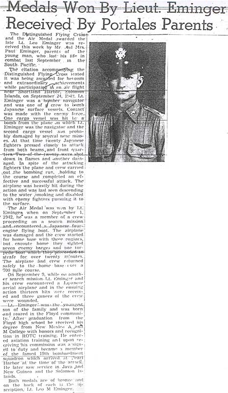 News "Medals Won By Lieut. Eminger Received By Portales Parents"