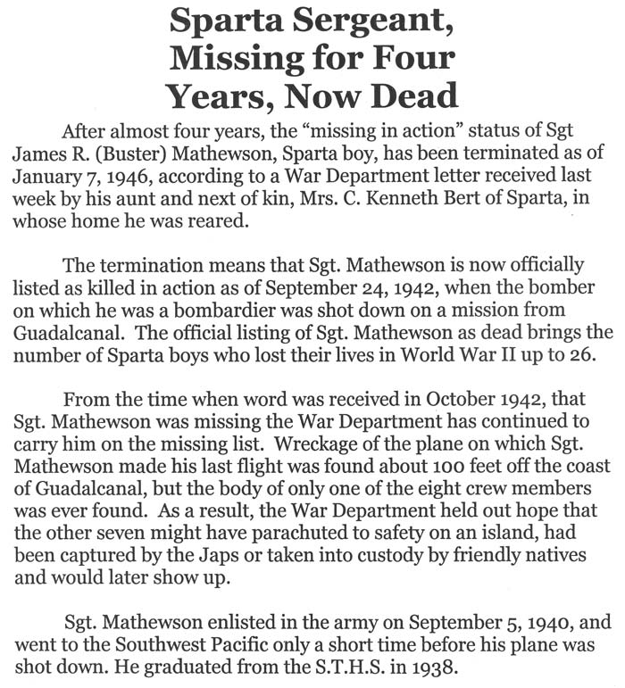 Sparta Sergeant, Missing for Four Years, Now Dead