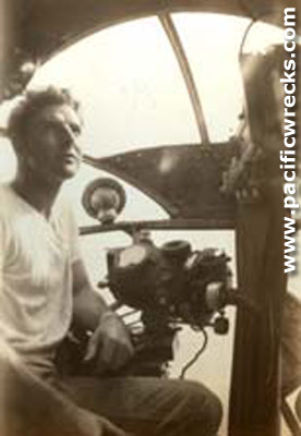 Bombardier 1st Lt. Francis G. Peattie in the nose of B-17E Flying Fortress seated at the Norden bombsight during a mission On June 26, 1943 1st Lt. Francis G. Peattie was bombardier aboard B-17E "Naughty But Nice" 41-2430 and was Missing In Action (MIA). Credit: Jose Holguin via Curt Holguin Date: circa 1943