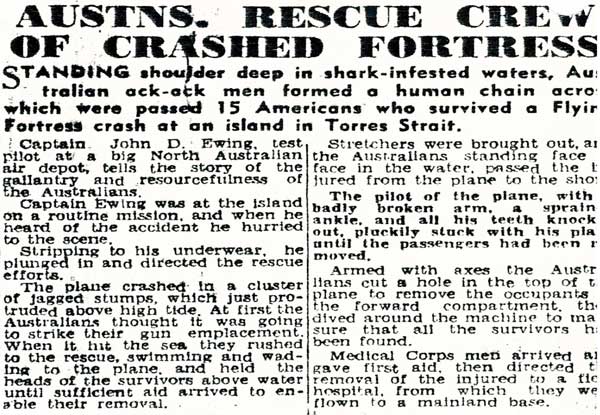 Newspaper article"Australians rescue crew of crashed Fortress"