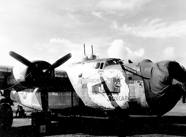 Aircraft History Built by Consolidated at San Diego. At the factory, painted sky blue. Delivered to the U.S. Army Air Force (USAAF) as B-24J-5-CO Liberator serial number 42-73048. Converted into F-7A photographic reconnaissance Liberator. Ferried overseas via Hickam Field then across the Pacific to the South West Pacific Area (SWPA). Wartime History Assigned to the 5th Air Force (5th AF), 6th Photographic Reconnaissance Group (6th PRG), 20th Combat Mapping Squadron (20th CMS). Nicknamed "Bourbon Boxcar" with the nose art of a boxcar with a face on the front and wings with men riding on top and inside with the door open with crates of burbon inside overtop a cloud. Later, this F-7 was stripped to an aluminum finish. This F-7A flew photographic reconnaissance missions over New Guinea, Netherlands East Indies (NEI) and Philippines. This F-7 was flown by Erickson on two missions. Ultimate fate unknown, likely scrapped or otherwise disappeared. References USAF Serial Number Search Results - B-24J-5-CO Liberator 42-73048 "73048 (20th Combat Mapping Squadron, 6th Photo Group) "Bourbon Boxcar")" Contribute