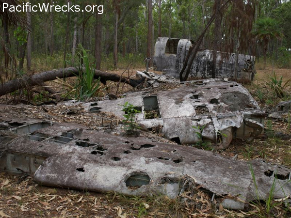 In the foreground is the wing wreckage and in the background is the fuselage center section.