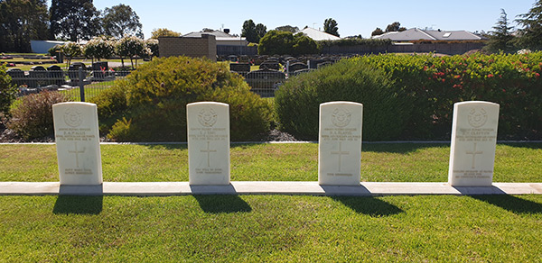 Four crew graves at Sale War Cemetery killed in the crash of Beaufort A9-228 on Mount Tawonga