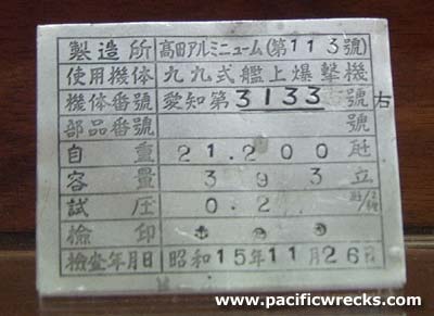 D3A1 Val 3133 main dataplate displayed at Pearl Harbor National Museum
