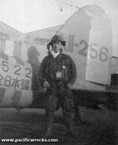 Pilot Tatchikawa stands in front of the Type 99 Carrier Bomber with Houkoku 522. According to his testimony, its