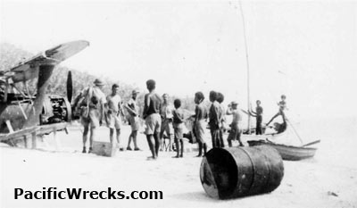 Australians Army patrol and locals people exampine F1M2 Pete RI-6 Abandoned at Deboyne Lagoon
