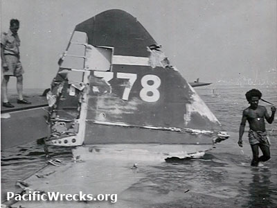 G4M1 Betty 2271 tail wreckage with F-378 painted in white at the edge of Panaeati Island (Panniet) bordering Deboyne Lagoon