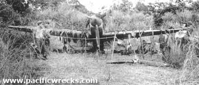 U.S. Marine with Ki-61 Tony 263 camouflaged at Cape Gloucester Airfield This Ki-61 was camouflaged with palm fronds and hidden until discovered by U.S. Marines. In the foreground is a three bladed propeller. Credit: USMC via Robert Rocker Date: December 30, 1943