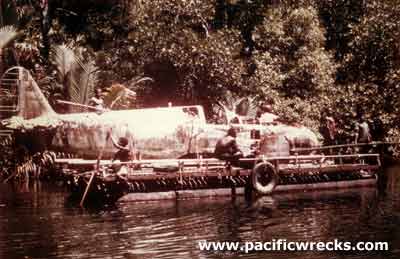Ki-61 379 loaded aboard a raft after salvage from Wom Point near Wewak