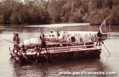 Ki-61 379 loaded aboard a raft after salvage from Wom Point near Wewak