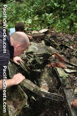 Keith Hopper examines wing of P-39F Airacobra 41-7204