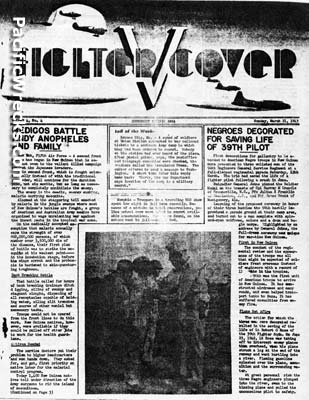 Plane set Afire - The action for which the three men were decorated resulted in saving of the live of Lt. Robert G. Rose of the 39th Fighter Squadron. On June 25, 1942, Lt. Rose was taking off to intercept enemy planes then overhead, when his plane struck a log at the end of the runway and went hurtling into a river. Flaming gasoline splashed over the plane, ammunition and the surrounding water. At great personal risk the three Negro engineers plunged into the river, swam to the blazing plane and pulled the unconscious pilot to safety. |