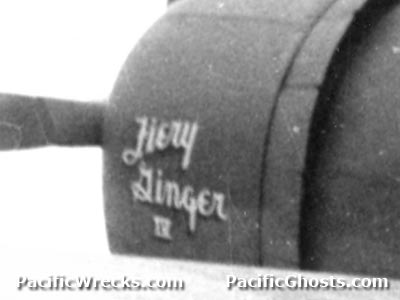 P-47D "Fiery Ginger IV" 42-22668 nickname on the left engine cowling Nicknamed "Fiery Ginger IV", painted in white script with a black shadow on the left side of the cowl. Visible is one of the four propeller blades. Credit: 5th Fighter Command Date: 1944