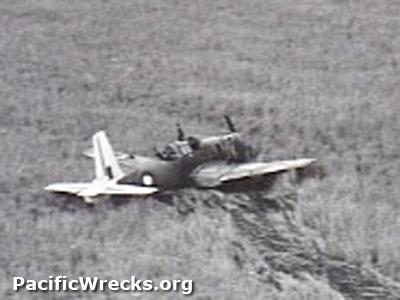 Aerial view of Vultee Vengeance A27-83 force landed near the Leron River near