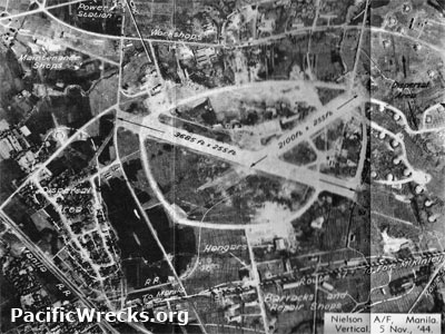 Location Lat 14° 34' 0" N Long 21° 1' 0" E Nielson Field was located at Paseo De Roxas Road and Ayala Avenue in Makati in southern Manila in the National Capital Region (NCR). of Luzon in the Philippines. Construction Built prewar by the Americans as an airfield. The airfield had two intersecting runways, the main runway NW/SE and a smaller runway running NE to SW, with taxiways that connected both, plus dispersal areas in the surrounding area. Named Nielson Field after New Zealander Laurie Reuben Nielson who was a businessman and aviation enthusist in the Philippines. Prewar Used by American Far Eastern Aviation and Philippine Airlines (PAL) as a civilian airport. Wartime History When the threat of war loomed, Nielson was take over by the FEAF and enlarged with hangars, workshops and facilities. FEAF's Manila Air Depot where new aircraft were assembled and equipment stored. During early January 1942 occupied by the Japanese Army and used as a military airfield during the Japanese occupation of the Philippines. On November 5, 1944 the main runway measured 3,685' x 255' and the second runway measured 2,100' x 255'. Japanese units based at Nielson Field 51 Hikoshidan Shirebu Hikohan (51st Air Brigade) Ki-49 American missions against Nielson Field January 26, 1942–January 9, 1945 American Usage During March 1945 liberated by the U.S. Army. Many Japanese planes were captured including: Ki-49 Helen 3567. Rapidly, Nielson Field was repaired and again used as an American airfield. By July 1, 1945, the old SE/NW runway is now used for aircraft parking only. The main runway was surfaced with asphalt and gravel, expanded to 6,000' x 100' with a 500' overrun on each end and 25' shoulders. Field equipped for night operation, repairs with gas, oil and accommodations. For the remainder of 1945, Nielson Field was also known by the U.S. Army as APO 75. American Units based at Nielson Field 374th TCG, 33rd TCS (C-47) from Hollandia April 8, 1945 - ? 374th TCG HQ (C-47s) from Biak May 28, 1945 - ? 374th TCG, 22nd TCS (C-47) Finschafen arrives August 1, 1945–January 31, 1946 inactivated Postwar In 1947 Nielson was closed as an airfield. Afterwards, the land was used for commercial development. The main runway is Paseo De Roxas Road and the tarmac area is now Ayala Avenue. Today The former airfield area became the commercial center of Makati. The former Nielson Tower (Manila Internation Air Terminal Building) is the only original building that remains. Nielson Tower (Manila Internation Air Terminal Building) The original tower and air terminal building. Today operated by the Ayala Museum and a restaurant Nielson Tower Club & Restaurant today Blackbird Makati. References Terrain Handbook 41A Manila City, page 34-35 map 18 Index to Air Bases - Research Report No. 85, I.G. No 9185 - July 30, 1944 Contribute