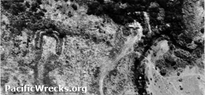 Aerial view of revetments one with a parked Ki-43 Oscar at