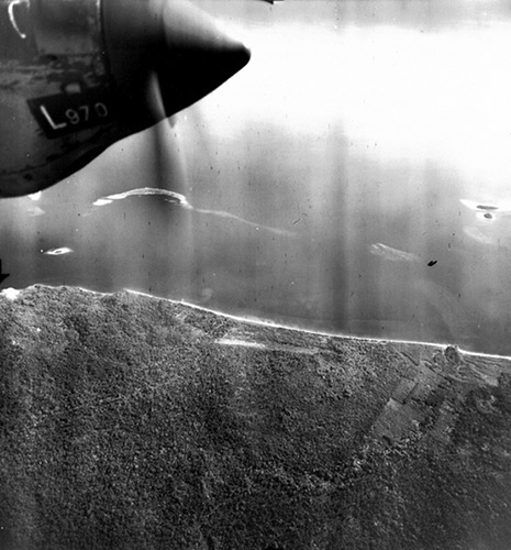 Aerial view of Kieta Airfield on Bougainville from 15,000'
