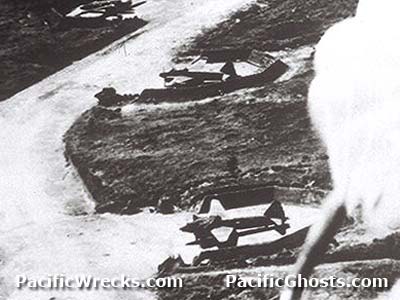 Low level strike over ravetments with parked G4M1 Betty bombers at