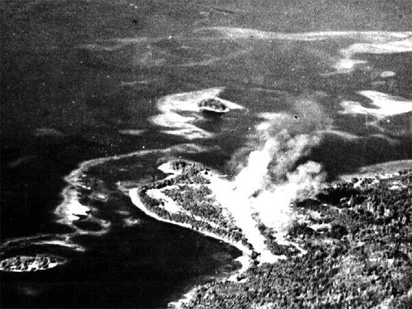 At the center with smoke rising is