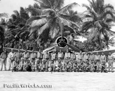 VMF-213 pilots pose with one a F4U Corsairs at