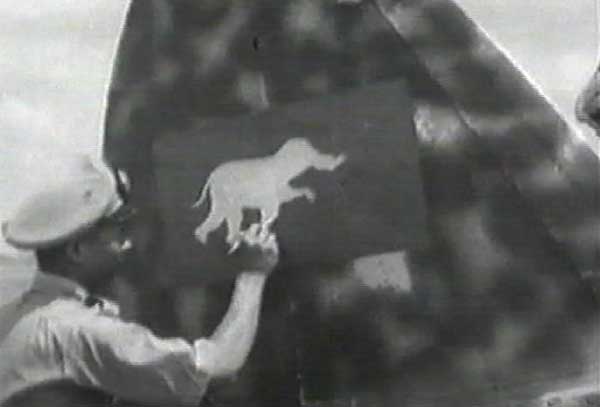 Ki-43 OSCAR In Thailand (?) going thru checks, and painting an elephant emblem