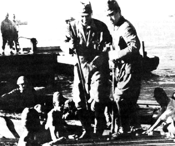 Lt. General Masaharu Homma, 14th Army Commander coming ashore at