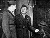 "(Page 20) "Heroes Can Look at a Hat... With Eyes on the Future - Strolling on Park Ave., Lieut. Col. Greg (Pappy) Boyington (right) and his cellmate in a Jap prison camp, Major Donald Winser Boyle, do some window shopping. Both Marine heroes are at the Waldorf-Astoria for a glimpse of Manhattan life. Pappy has 26 Jap planes to his credit."