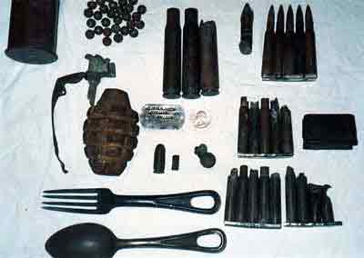 Carlisle Bandage Tin Hill 27 US .50 Cal Bullet head Tarawa US .45 Cal Bullet head Edsons Ridge Nambu pistol bullet head Ilu River |