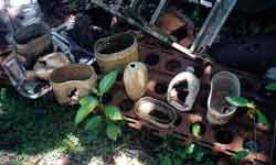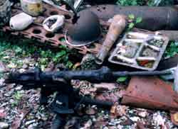 tail, a Japanese Medium tank turret and assorted mess tins,