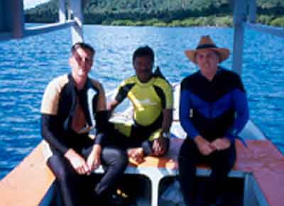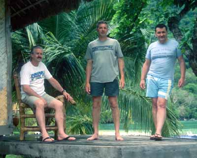 Brian Beltz and I crossed paths in 1973, I was in the Marine Corps, and he was in the Royal Australian Navy. We were both young and foolish back then (now we're both middle aged and foolish) He and another friend, Tom Sheley are the two guys I usually go bumming with on these Pacific expeditions. Tom is on my left and Brian is on my right, wearing a T-shirt from his home town of Perth. |