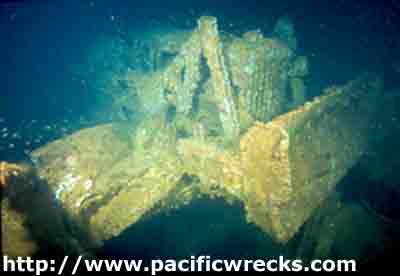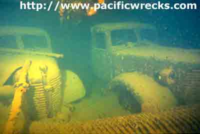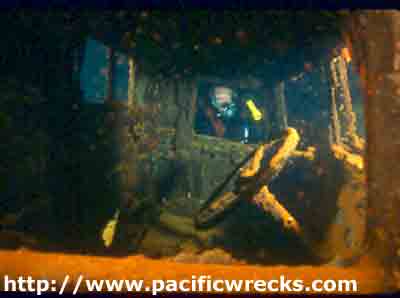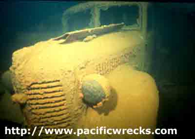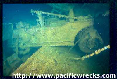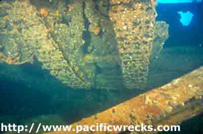 ![]() Treds of bulldozer precariously suspended in hold. |
