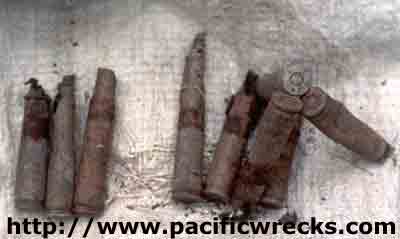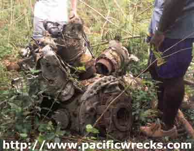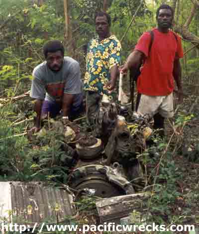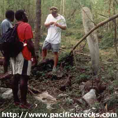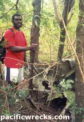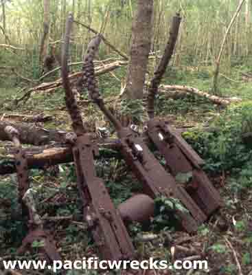 The place of the crash covered a great area. The plane exploded in many small scrap of metal. Behind, you can see one of the 6 machines gun 12.7mm. The position is S 17°32,126 E168°14,146