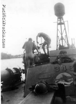 Captain Lt(jg) James R. Burk, USNR, O-215385 (KIA) NJ Crew Ensign Alfred W. Haywood, USNR, O-226621 (MIA / KIA strafing) NY Crew S1C William Neal Walters, USNR, 3380290 (MIA / KIA by bomb in water) IL Cook Robert West Mills USNR, (KIA, internal wounds) Torpedo TM2C Raymond Russell Reilly USNR, 7252721 (MIA / KIA) MI Gunner GM3C Allen Frederick Walzhauer USNR, 7262023 (MIA / KIA) IL Crew S1C Leslie Wilson Wicks, USNR, 8013318 (MIA / KIA) MA Crew Q3C Stanley Wishiewski, USNR (MIA / KIA) Crew Lt. James R. Thompson, USNR, C.O. PT Boat Squadron 25 (WIA) Crew GM2C Norman Alfred Nadeau USNR (WIA) Crew MM2C James Phillip Alkire USNR (WIA) Crew PM2C James Harold Cheek USNR from USS Hilo AGP-2 (WIA) Crew Y2C Verle James Wisdom USNR (WIA) Crew R2C Paul Eugene Whitmore USNR (WIA) Crew Ensign Gustav Walter Wilde USNR (WIA) Crew CPM John Frkovich USNR from USS Hilo AGP-2 Crew MM2C Frank Joseph Burns, USNR Crew MM1C Ollie “J” Talley, USNR Passenger Lt. Col. Petitt, US Army Observer (KIA) Passenger Lt. Eric M. Howitt, RAN Volunteer Reserve (WIA) Sunk April 29, 1944 by friendly fire Ship History Built by Electric Boat Co. (Elco) in Bayonne, NJ. Wartime History On April 29, 1944 PT-346 was dispatched to the aid of PT-347 grounded on a coral reef three miles near Cape Lambert from the line of demarcation and strafed by friendly F4Us. Arriving at the site to assist, PT-346 and PT-346 were attacked by friendly aircraft. This boat was set on fire, nine killed and eight wounded. One of the casualties was U.S. Army observer Lt. Col. Petitt, who was clung to a life raft after being hit in the lung. Many witnessed his head blown. The ship's mascot an airdale dog named "Chopper" took shrapnel in the face during the incident, but survived. Memorials Wicks, Haywood and Waters were officially declared dead April 29, 1944. Burk was declared dead October 29, 1944 Reilly and Walzhauer was officially declared dead January 17, 1946. All are memorialized on the tablets of the missing at Manila American Cemetery. Relative Jo Frkovich (relative of John Frkovich) References At Close Quarters PT Boats in the United States Navy pages 233-234, 474, 488 WWII Nominal Roll - Howitt, Eric Mervyn Tragedy at Sea The Untold Story of PT-347, PT350 & PT 346 by Dan Williams Enemy in the Mirror by Jo Frkovich with Daniel Williams & Thomas Williams Thanks to Dan Williams for additional information Contribute