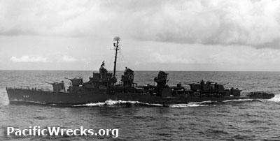 Ship History Built by Bethlehem Steel Corporation at San Francisco. Laid down October 10, 1942 as USS Putnam. On February 6, 1943 renamed "The Sullivans". Launched April 4, 1943 sponsored by Mrs. Thomas F. Sullivan, the mother of the five Sullivan brothers (George, Francis, Joseph, Madison, and Albert ages 19 to 27) who died aboard USS Juneau (CL-52) sunk by Japanese submarine during the Naval Battle of Guadalcanal on November 13, 1942. This was the greatest military loss by any single American family, and their death caused the U.S. Navy to revise their policy about having siblings serve on the same ship simultaneously. Commissioned on September 30, 1943 with Commander Kenneth M. Gentry in command. Wartime History Following a shakedown cruise, The Sullivans got underway with USS Dortch (DD-670) and USS Gatling (DD-671) on December 23 1943. The group arrived at Pearl Harbor five days later and began training operations off Hawaii. Assigned to Destroyer Squadron (DesRon) 52. On 16 January 1944, departed Pearl Harbor with Task Group 58.2 (TG 58.2) bound for the Marshall Islands. En route to Kwajalein the group was joined by Battleship Division 9 (BatDiv 9). Two days later, as the American warships neared their target, picket destroyers were sent ahead to protect the main force from the enemy. On January 24, 1944 TG 58.2 arrived at the dawn launching point for air strikes against Roi. For two days, screened USS Essex (CV-9), USS Intrepid (CV-11), and USS Cabot (CVL-28) as they launched nearly continuous aerial raids. Afterwards, continued operations to the north and northwest of Roi and Namur until February 4, 1944, when TG 58.2 retired to Majuro to refuel and replenish. On February 12, 1944 at noon, The Sullivans screened Task Group 58.2, as part of Task Force 58's (Essex, Intrepid, and Cabot) raid on Truk. From the time the group arrived at its launching point on February, 16, 1944. the carriers launched what seemed to be nearly continuous air strikes against Truk. "No enemy opposition of any kind was encountered," wrote The Sullivans' commander, "indicating that the initial attacks came as a complete surprise." While the enemy may have been slow to react at the outset, they soon struck back — torpedoing USS Intrepid (CV-11), at 00:10 on the 17th. The carrier slowed to 20 knots (37 km/h) and lost steering control. The Sullivans, Owen (DD-536), and Stembel (DD-644) stood by the stricken carrier and escorted her to Majuro for repairs. Reaching Majuro on 21 February, the destroyer soon sailed on to Hawaii, arriving at Pearl Harbor on March 4 for dry docking and upkeep. Underway again on the 22nd, The Sullivans covered the sortie of Task Groups 58.2, 58.9, and 50.15 from Majuro, bound for Palau, Yap, and Woleai. On the evening of the 29th, while the American warships were approaching the target area, enemy aircraft attacked but were driven off by the anti-aircraft fire from the ships. The next day, The Sullivans screened the carriers during air strikes and that evening helped to beat off a Japanese air attack. After returning to Majuro for replenishment, the warship screened TG 58.2 during air strikes on Hollandia, Tanahmerah, Wakde, and Aitape. Late in April, The Sullivans participated in support of air strikes on the Japanese base at Truk. On the 29th during one of these raids, the Japanese retaliated with a low-level air attack. American radar picked up four Japanese planes 16 miles (26 km) away, coming in fast at altitudes varying from 10 to 500 feet (150 m). When the planes came within range, The Sullivans opened up with one twin 40mm mount and all five 5" guns. Two aircraft splashed into the sea due to the firing of the American ships, and one crossing ahead of The Sullivans was taken under fire and crashed in flames off her port beam. On May 1, 1944 in the afternoon arrived off the northwest coast of Ponape and provided cover for the battleships led by USS Iowa (BB-61) performing a shore bombardment. From the disengaged side of the screening force, The Sullivans fired eighteen rounds from extreme range at Tumu Point. She then noted three beached Japanese landing barges and shifted her fire to them. However, she received the cease-fire order shortly thereafter. During the Task Force's retirement, The Sullivans was refueled by USS Yorktown (CV-10) and arrived at Majuro on 4 May. Ten days later, TG 58.2 sortied again, bound for Marcus and Wake. Launching the first raid at 08:00 on the 19th, the American carriers kept up nearly continuous air strikes with no enemy interruptions for three days. En route back to Majuro, The Sullivans and her sister destroyers conducted a thorough but unsuccessful search for a suspected submarine. On June 6, 1944 underway again to screen the carrier force bound for Saipan, Tinian, and Guam. On occasion while in the screen, The Sullivans' radar picked up enemy "snoopers" around the periphery of the formation. On June 12, 1944 at 3:15am shot down one attacking plane in flames. The second day's strikes against Saipan took place on the 13th to support the American landings there. Assigned to the duty of communication-linking station between task forces, The Sullivans remained within visual sighting distance of both TG's 58.1 and 58.2 during the day. That day, she picked up 31 Japanese merchant seamen after their ship had been sunk offshore and transferred these prisoners to flagship Indianapolis (CA-35). On 19 June 1944, during the first day of the Battle of the Philippine Sea, Japanese aircraft attacked the task group. The Sullivans picked up a plane visually at a range of less than five miles (8 km). Judy diving from 23,000 feet (7,000 m), pressed home their attacks. One, taken under fire by The Sullivans, took tracer fire from the ship's 20- and 40-millimeter batteries and, moments later, crashed just short of the horizon. American air attacks against Pagan, made without enemy retaliation, topped off the Saipan-Tinian-Guam strikes; and The Sullivans proceede