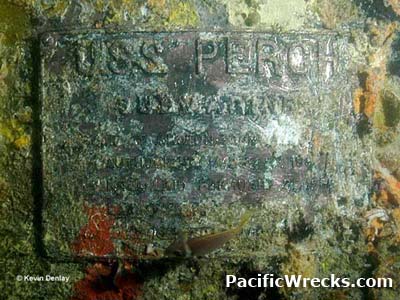 The first two lines of the plaque read: "USS PERCH SUBMARINE"