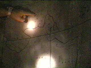 Overhead, there is a circular map of Rabaul, and the entire Gazelle Peninsula